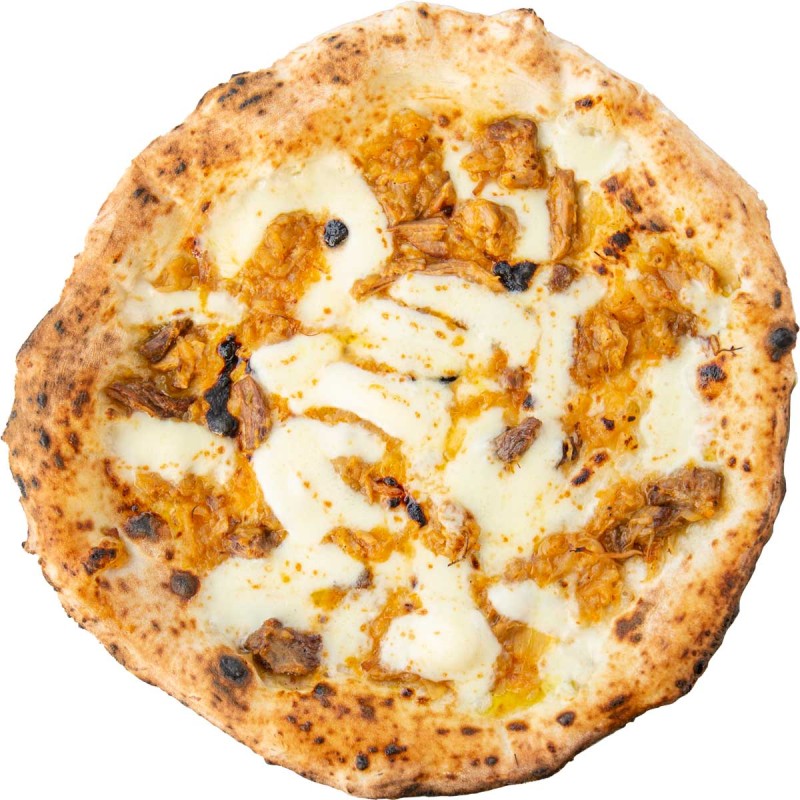 Pomodoro, Fiordilatte di Agerola, Crema di carciofi con aglio dell’Ufita presidio Slow Food e prezzemolo, Prosciutto cotto “Villani”, Carciofi freschi arrostiti, Funghi champignon freschi trifolati, Olive nere di Gaeta, Olio EVO “azienda agricola Badevisco”.